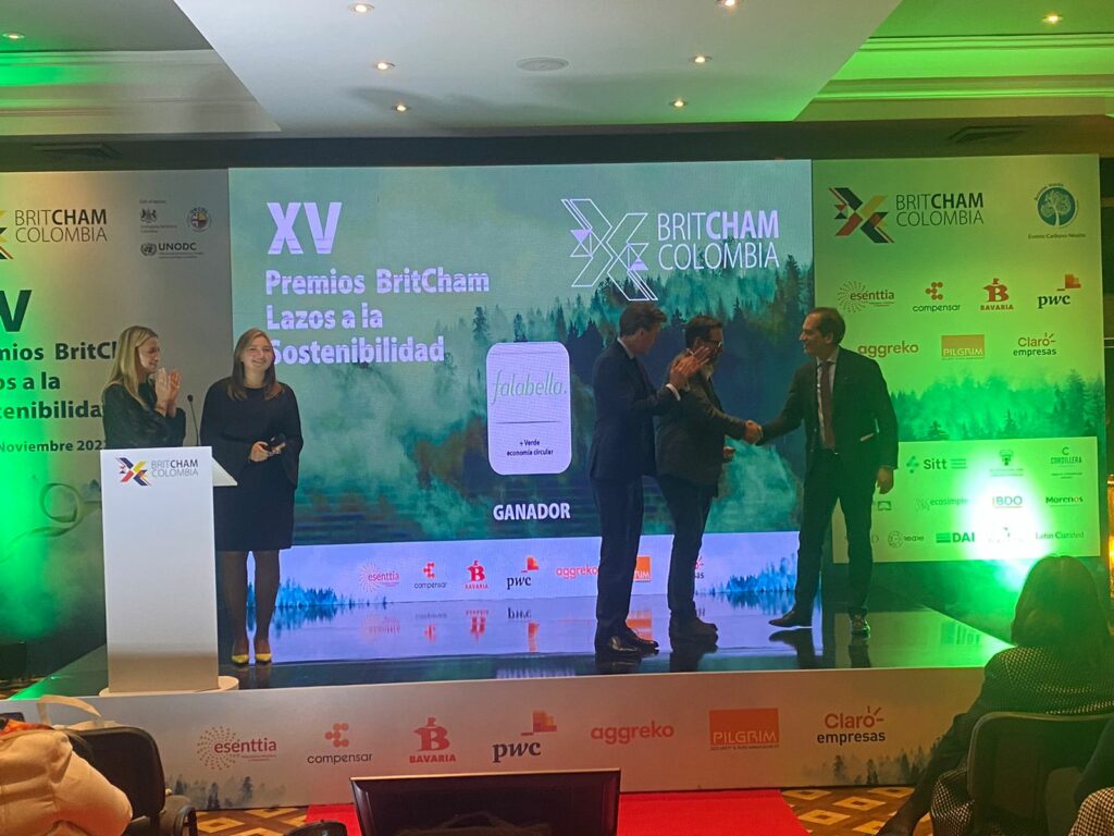 En la más reciente edición de los Premios BritCham “Lazos por la Sostenibilidad”, la Cámara de Comercio Colombo Británica reconoció nuestro proyecto de economía circular enmarcado en nuestra estrategia +Verde; otorgándonos así el premio en la categoría “Productos y Servicios Sostenibles Grandes Empresas”.